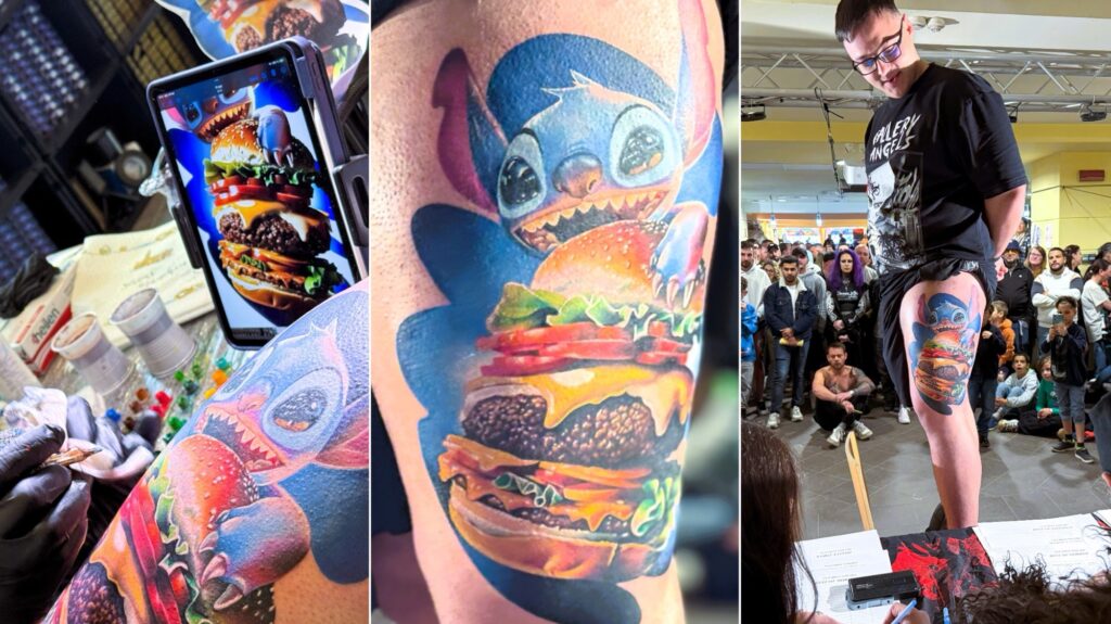 Artistul tatuator Radu Sitaru, de la un salon din Bucureşti, a reuşit să realizeze cel mai bun tatuaj al celei de-a doua zi a convenţiei internaţionale de tatuaje de la Sibiu, Transilvania Tattoo Expo, în care îl redă pe Stitch, celebrul personaj Disney, cum mănâncă un hamburger foarte mare.