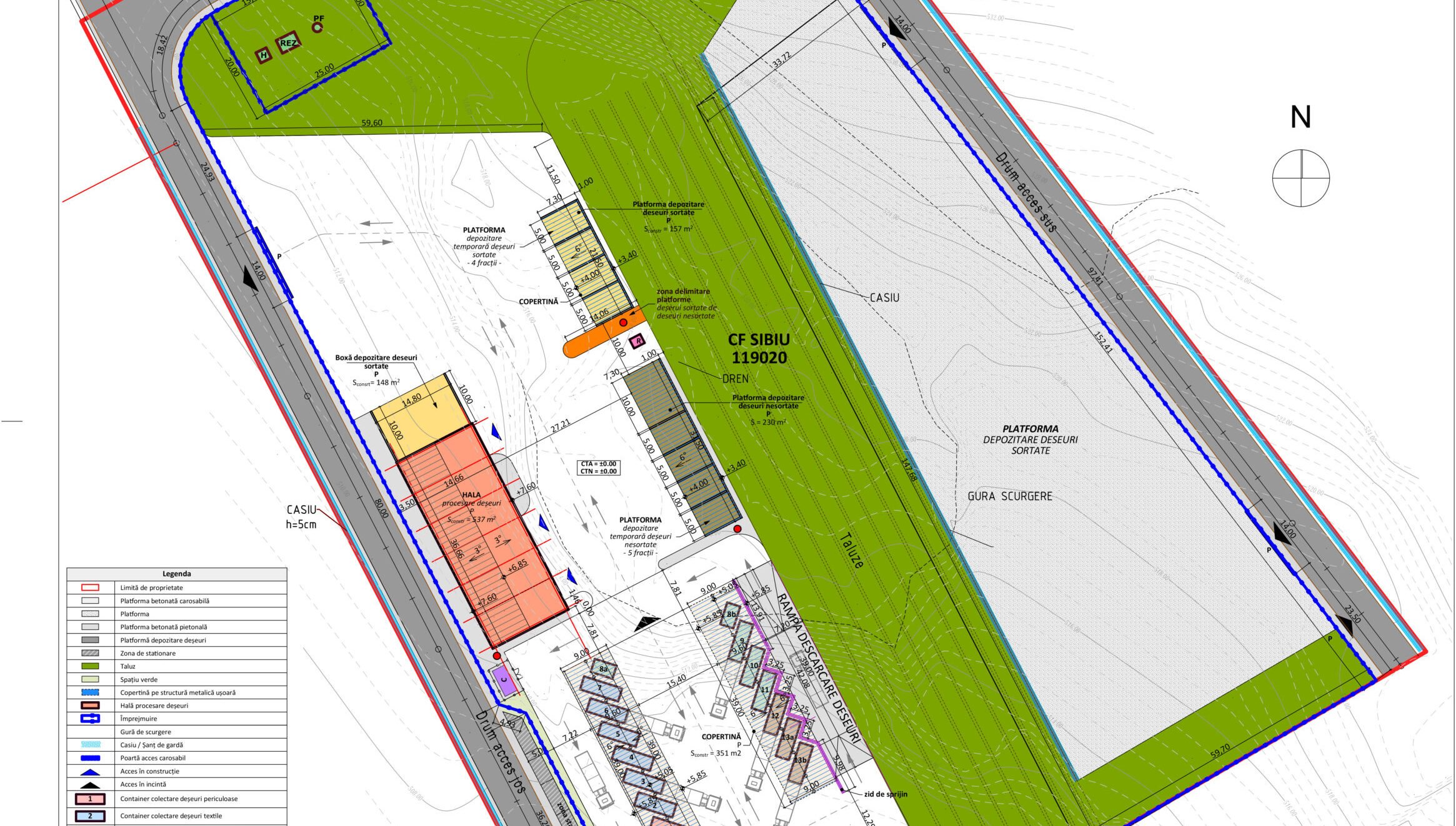- Construcția unei hale pentru procesarea deșeurilor, care va include un atelier pentru dezmembrări, un tocător pentru deșeuri voluminoase, un concasor, o sită, un separator cu benzi transportoare și o presă