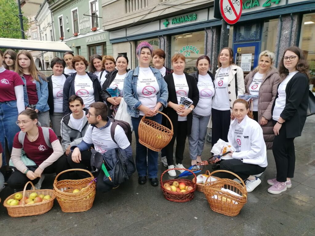 „De mai bine de 20 ani, marcăm la Sibiu Ziua Mondială de Luptă Împotriva Fumatului și de aproape 10 ani participăm alături de prietenii noștri de la Spitalul de Pneumoftiziologie la Marșul Antifumat, iar această colaborare ne bucură nespus, deoarece face mesajul nostru mult mai puternic. Acțiunea noastră, cunoscută sibienilor, este aceea de a oferi mere în schimbul țigărilor, iar apoi, într-un gest simbolic, ardem aceste țigări colectate, în fața sediului nostru, de pe Nicolae Bălcescu nr 6. Prin urmare și anul acesta suntem prezenți cu voluntarii noștri, cu coșuri cu mere, pentru a spune NU FUMATULUI!”, spune Raluca Morar, Director Crucea Roșie Sibiu.