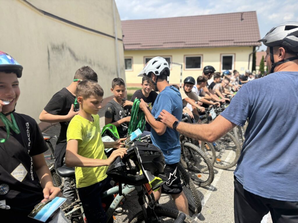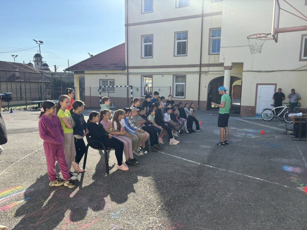 Totul a început în curtea școlii, unde copiii s-au antrenat cu exerciții de îndemânare pe bicicletă, au testat obstacole și și-au pus la treabă echilibrul. Cu căștile de protecție pe cap și chef de aventură, au pornit apoi într-un traseu prin comună, atent supravegheați de reprezentanții Poliției Sadu.