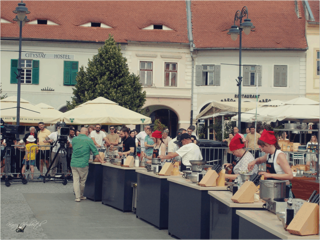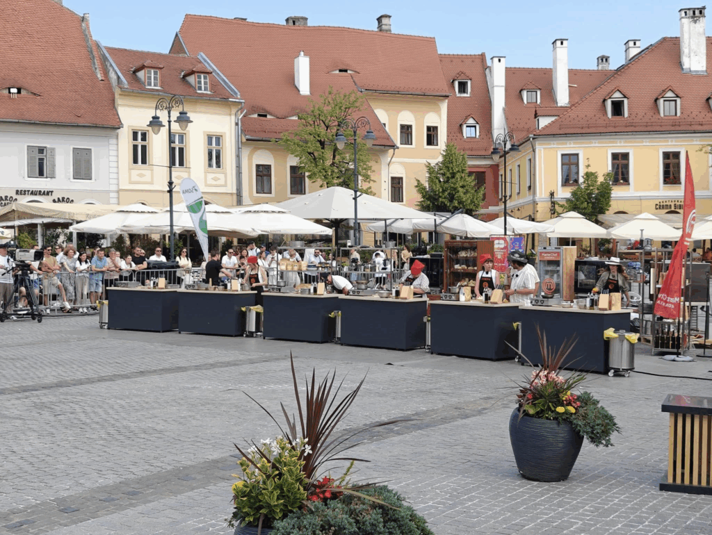 Piața Mică s-a transformat, pentru câteva ore, într-o adevărată bucătărie urbană în aer liber, unde competiția, presiunea și creativitatea au fost la ordinea zilei.