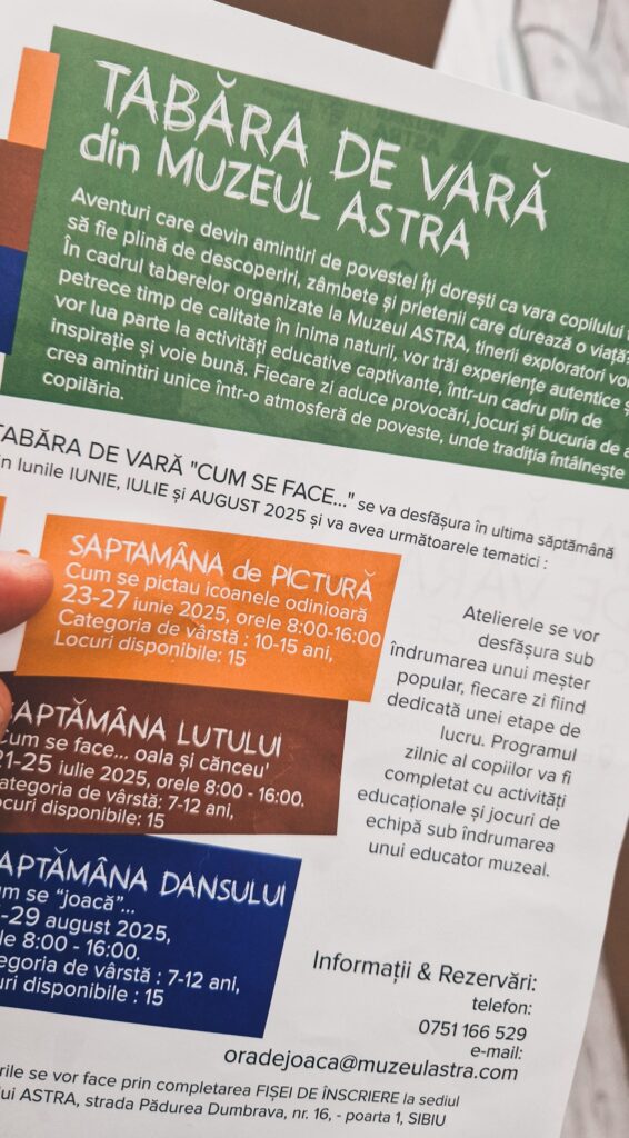 În perioada 23-27 iunie, la Muzeul în aer liber din Dumbrava Sibiului, copiii pot descoperi tainele picturii tradiționale în cadrul taberei creative organizate sub egida proiectului „Școala în satul tradițional 2025”.