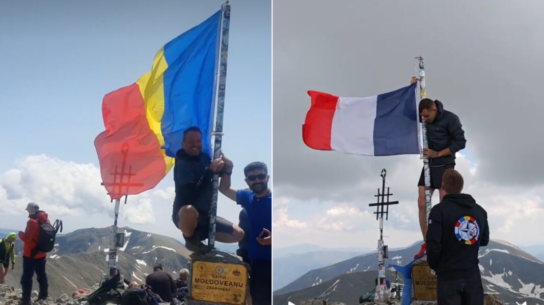 A izbucnit o dispută aprinsă pe internet, zilele acestea, după ce a fost publicată o filmare în care militarii francezi de la baza NATO din Cincu au arborat pe Vârful Moldoveanu steagul lor național.