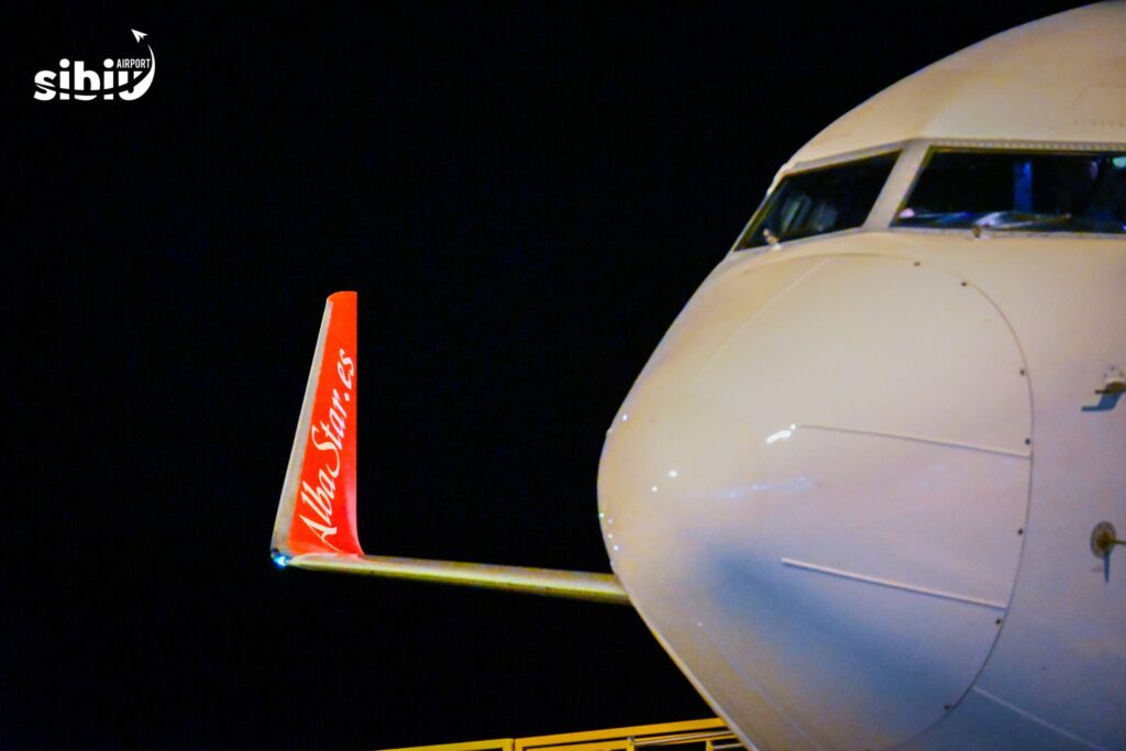Azi-noapte, la ora 2:15, în timp ce orașul dormea, echipajul Albastar Airlines a decolat spre noua destinație operată de pe Aeroportul Internațional Sibiu, Palma de Mallorca.