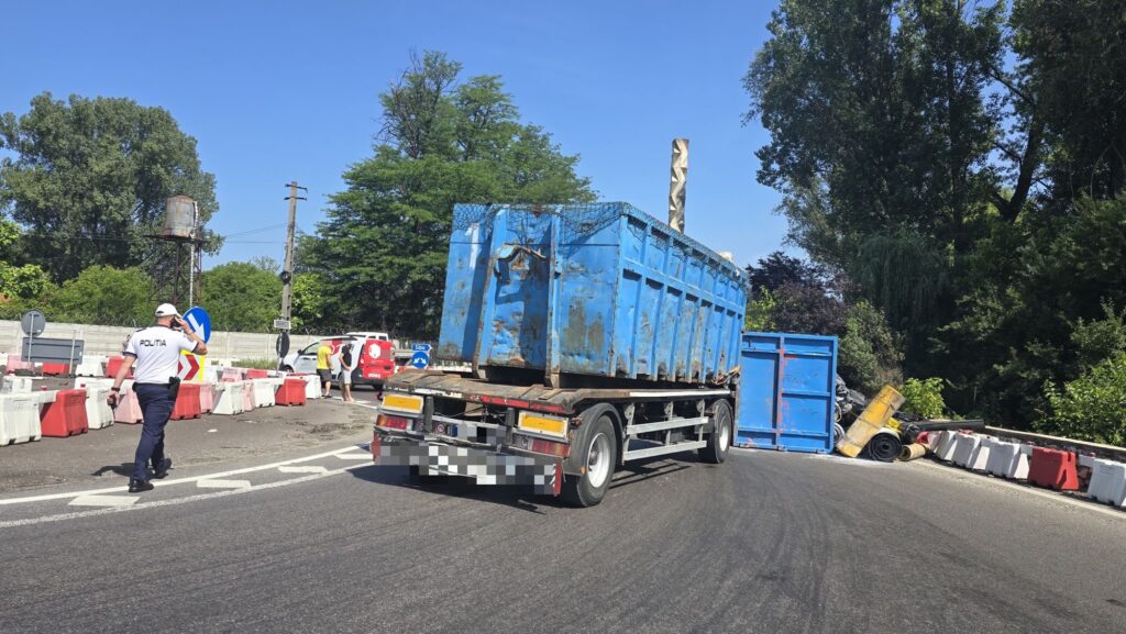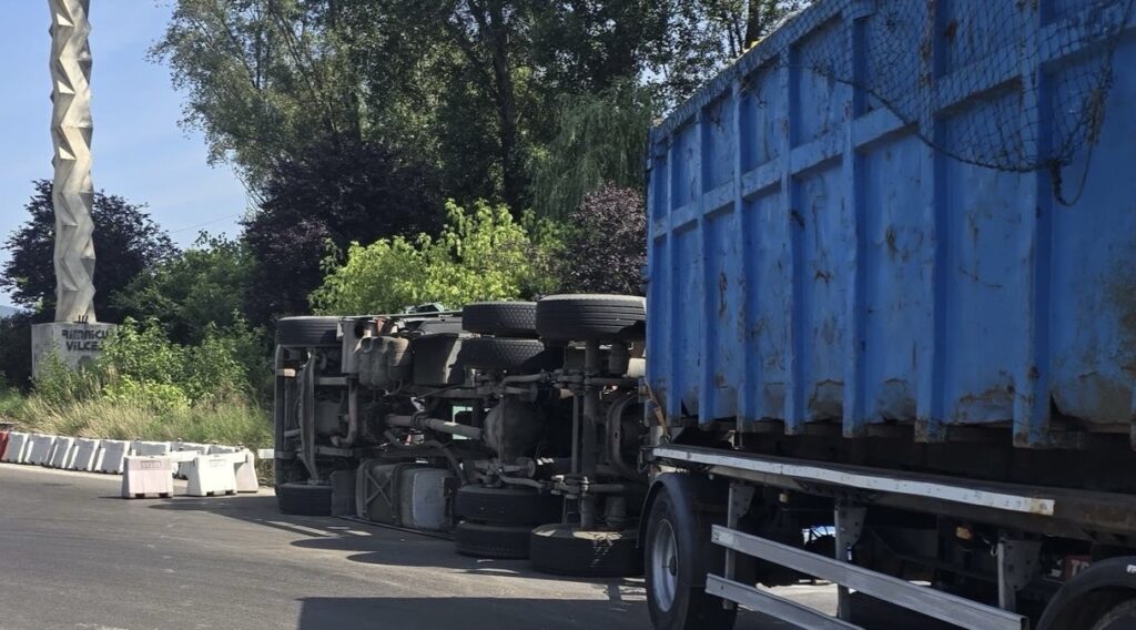Conform primelor date, un autocamion încărcat cu 18 tone de role de cauciuc s-a răsturnat. Marfa nu ar fi fost ancorată corespunzător, făcând astfel balans. În urma incidentului nu au fost înregistrate victime, iar conducătorul auto a fost testat cu aparatul etilotest, rezultatul indicând că nu consumase băuturi alcoolice.