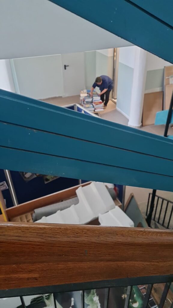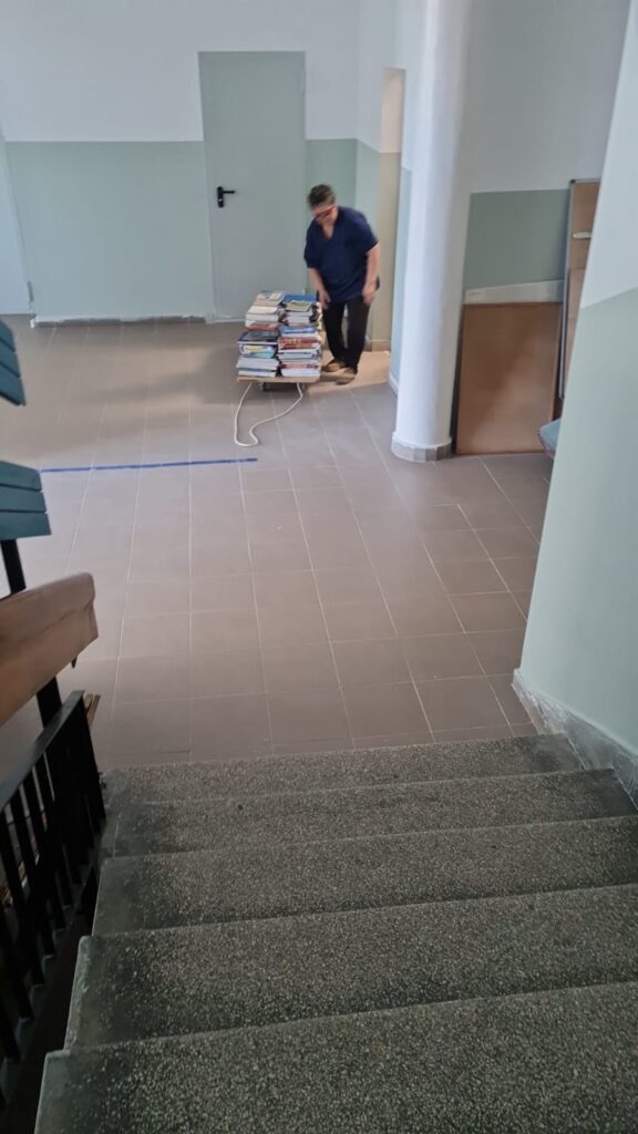 Deși a fost contractată o firmă pentru igienizarea spațiului, conform informațiilor disponibile pe platforma de achiziții publice SICAP, transportul cărților a fost realizat de personalul unității de învățământ, cu acordul tacit al doamnei director Maier Nicoleta-Elena. În sprijinul acestei afirmații stau fotografii primite astăzi pe adresa redacției, în care apare și o angajată a instituției, femeie de serviciu a Colegiului Național „Octavian Goga” Sibiu.