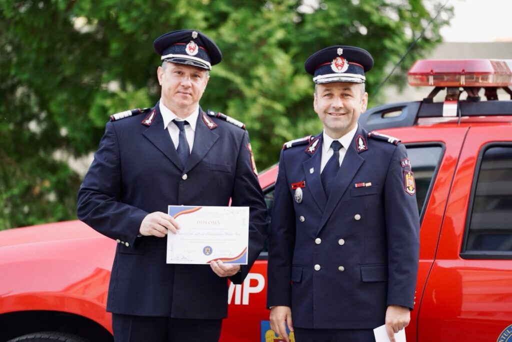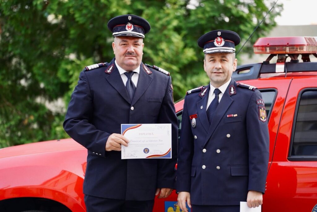 În semn de apreciere pentru întreaga activitate desfășurată în sprijinul comunității sibiene, cei nouă pompieri au fost onorați cu diplome simbolice, menite să le arate respectul și recunoștința colegilor și instituției.