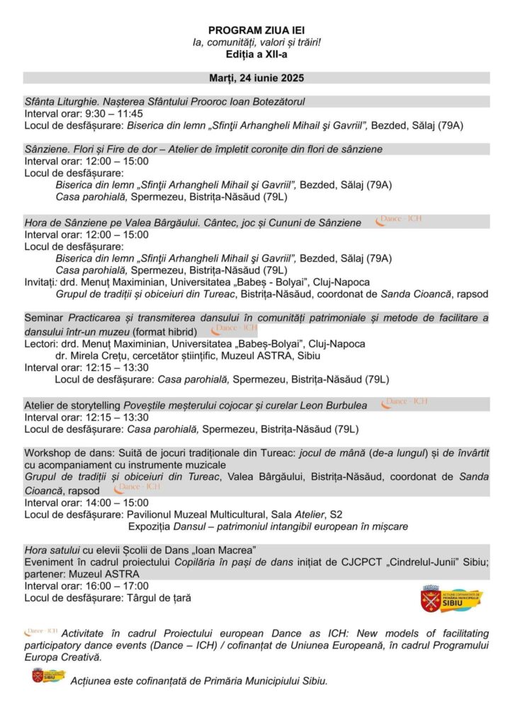 Ziua Iei 2025 face parte din proiectul european „Dance as ICH – New models of facilitating participatory dance events”, cofinanțat de Uniunea Europeană prin Programul Europa Creativă. Evenimentul valorifică dansul ca element de patrimoniu cultural imaterial și poziționează Muzeul ASTRA ca spațiu viu de conectare între generații și valori.