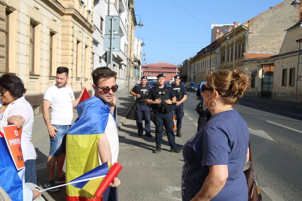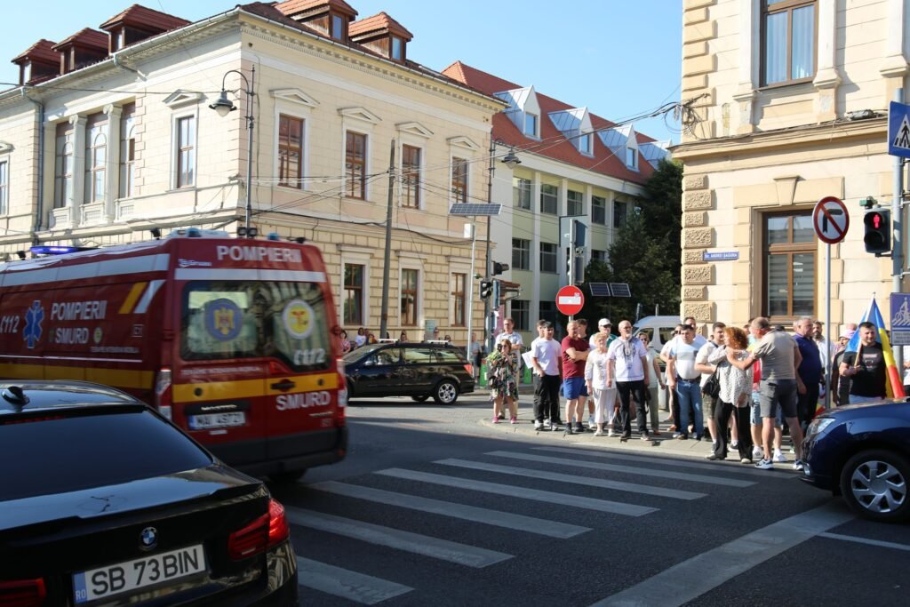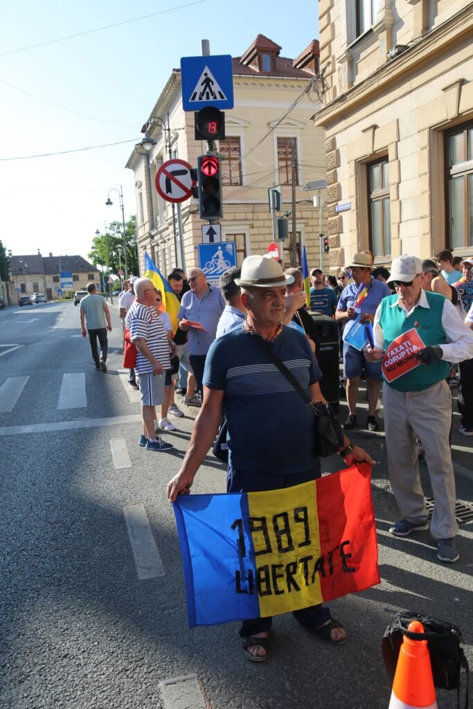 Duminică seara, 22 iunie 2025, în fața Prefecturii din Sibiu a avut loc un protest organizat de Alianța pentru Unirea Românilor (AUR), la care au participat peste 150 de persoane. Un grup a încercat să blocheze strada pe trecerea de pietoni.