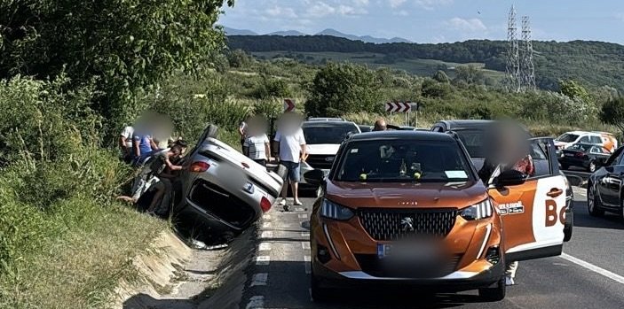 Conform primelor date, șoferul unei mașini nu a adaptat viteza de deplasare într-o curbă și s-a răsturnat în afara părții carosabile. În urma impactului, din fericire, au rezultat doar pagube materiale.