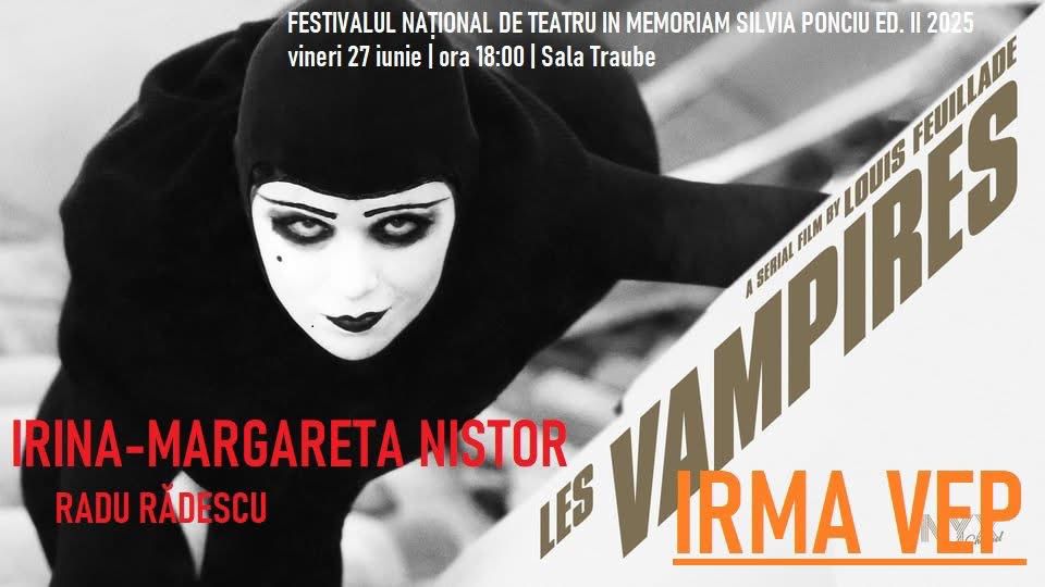 irina Margareta Nistor va juca în rol principal în spectacolul-lectură IRMA VEP/les VAMPIREs (și o vampiritză), o reinterpretare contemporană inspirată de mini-seria Irma Vep (2022) și de serialul mut Les Vampires (1915–1916). Spectacolul-lectură va avea loc de la ora 17:50.