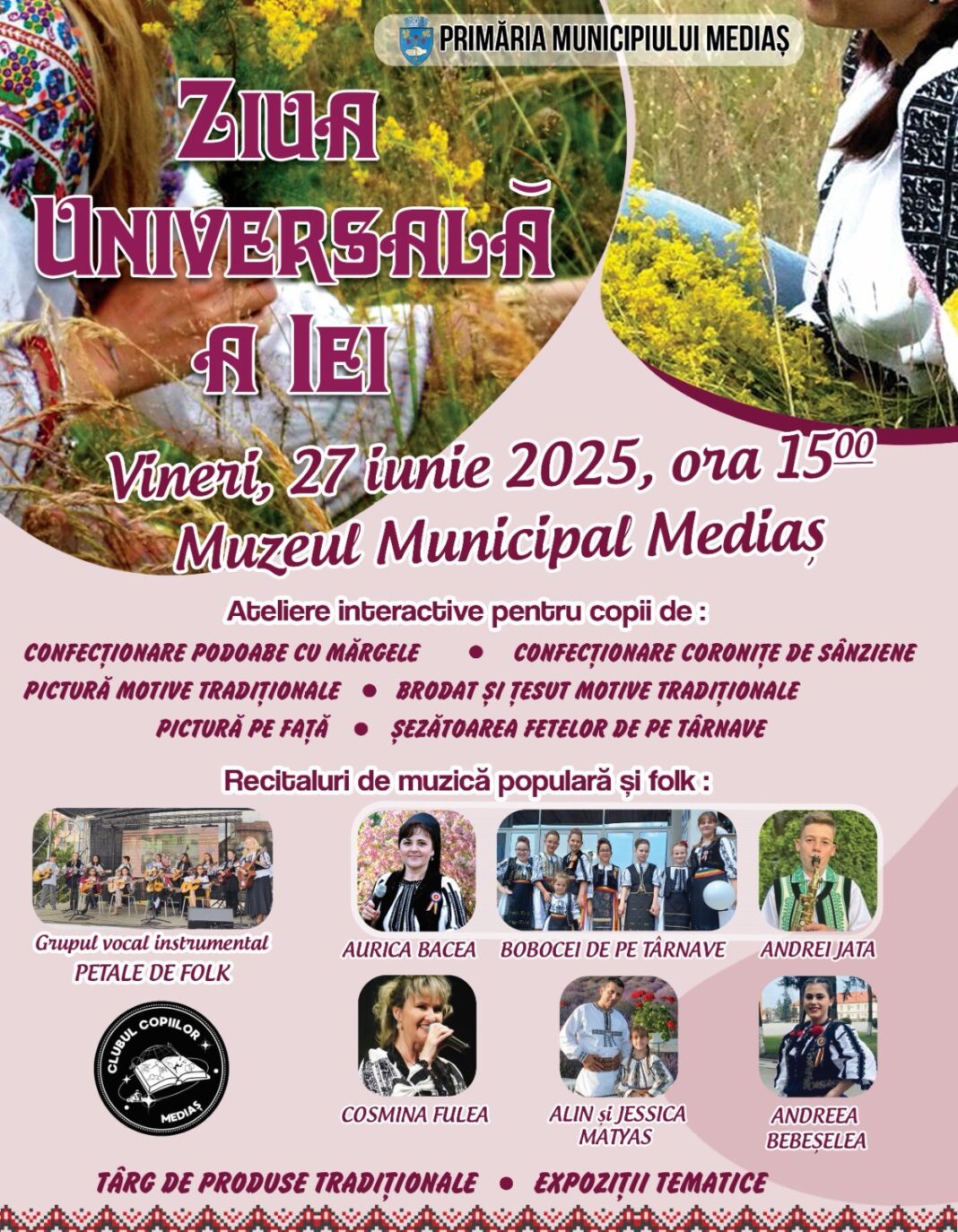 Primăria Municipiului Mediaș, prin Direcția pentru Cultură, organizează în data de 27 iunie, începând cu ora 15:00, în curtea Muzeului Municipal Mediaș, evenimentul „Ziua Universală a Iei” ediția 2025.