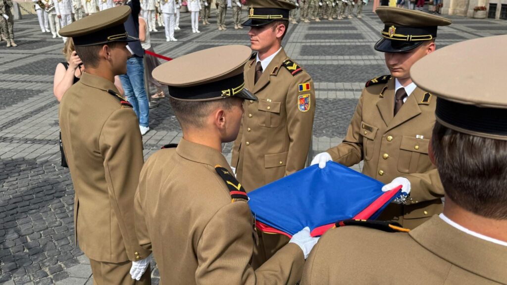 Ceremonia a fost onorată de detașamentul de onoare format din studenți ai Academiei Forțelor Terestre „Nicolae Bălcescu” din Sibiu, care au participat la momentul de arborare a drapelului, într-un gest care a reflectat respectul față de valorile românești și tradițiile militare ale țării.