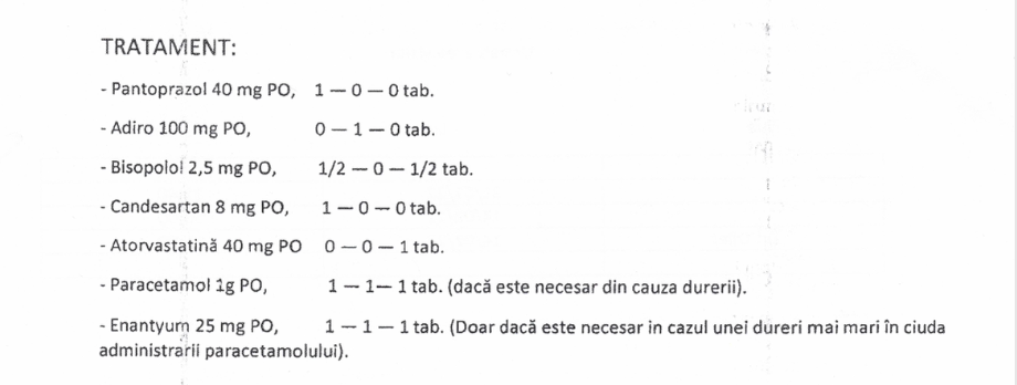 Totuși, conform documentelor medicale, bărbatul reținut la Sibiu avea mari probleme de sănătate și urma un tratament medicamentos destul de stufos.