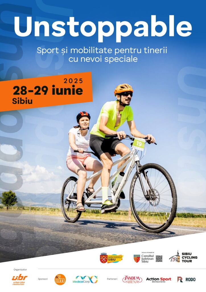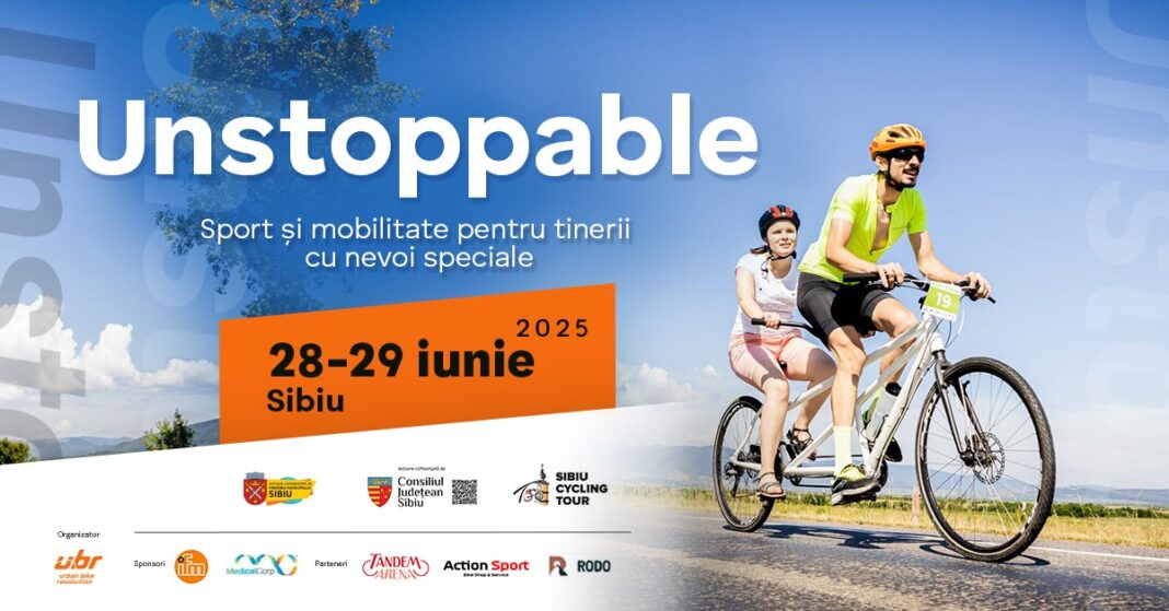 Pentru al cincilea an consecutiv, proiectul „Unstoppable – sport și mobilitate pentru tinerii cu nevoi speciale” transformă Sibiul într-un loc unde sportul nu are bariere. În cadrul Turului Ciclist al Sibiului, 20 de echipaje tandem formate din tineri tipici și tineri nevăzători din toată țara vor concura duminică, 29 iunie, în cursa sponsorilor, pe traseul Sibiu – Poplaca – Sibiu.