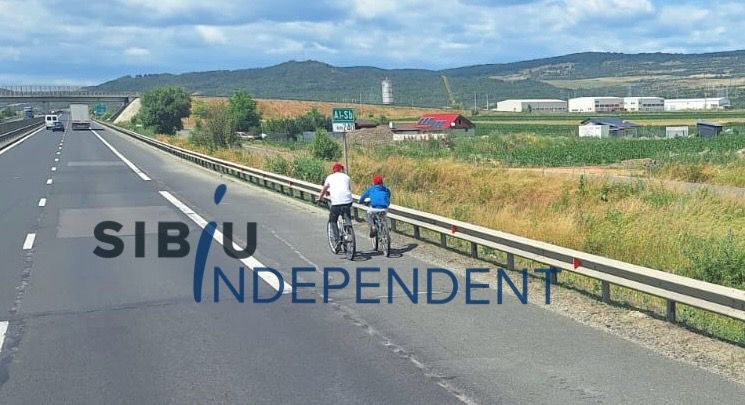 O scenă șocantă a fost surprinsă de reporterii SibiuIndependent. Pe autostrada A1, tronsonul Boița – Sibiu, un bărbat și un copil au fost surprinși pedalând liniștiți pe banda de urgență a autostrăzii.
