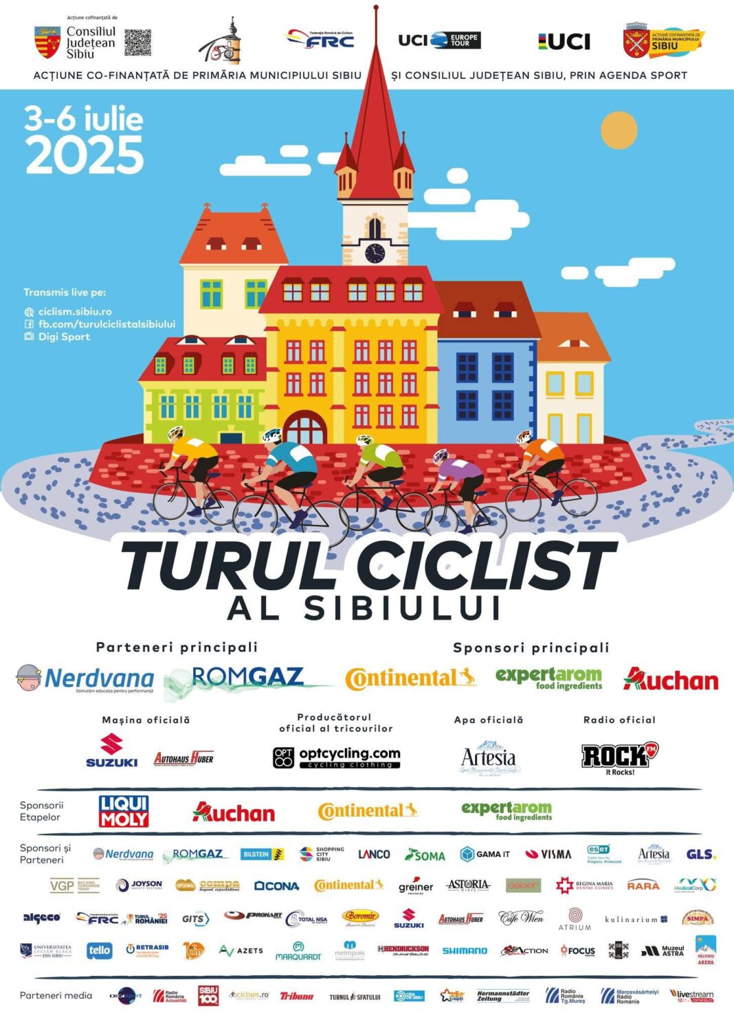 Transmisiunea live a tuturor etapelor va fi disponibilă pe Digi Sport, dar și online, gratuit și fără restricții, pe Facebook, Youtube și site-ul Turul Ciclist al Sibiului 2025.