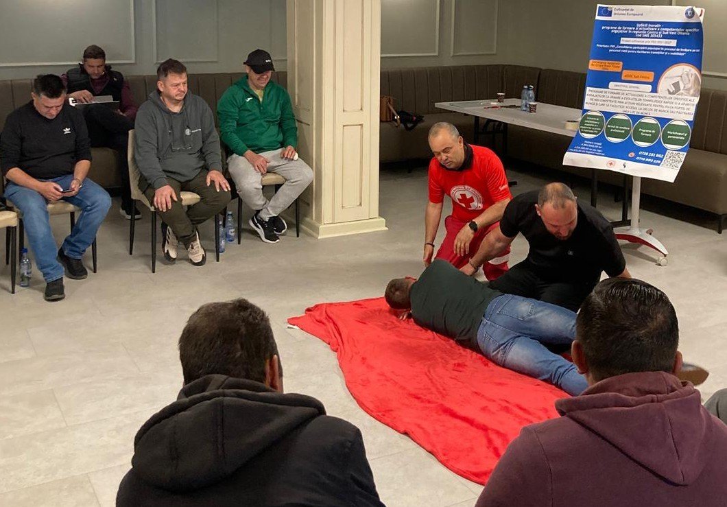 Curs de prim ajutor (mai 2025) – 15 angajați din sectorul privat sibian au învățat tehnici esențiale de intervenție în situații de urgență, aplicabile atât în mediul profesional, cât și personal.