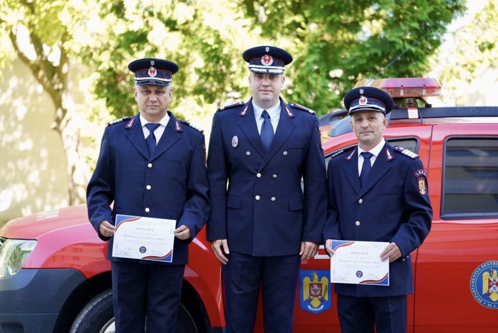 În semn de apreciere pentru efortul, dedicarea și profesionalismul de care au dat dovadă, comanda Inspectoratului pentru Situații de Urgență le-a oferit diplome simbolice, care marchează această frumoasă etapă în cariera lor.