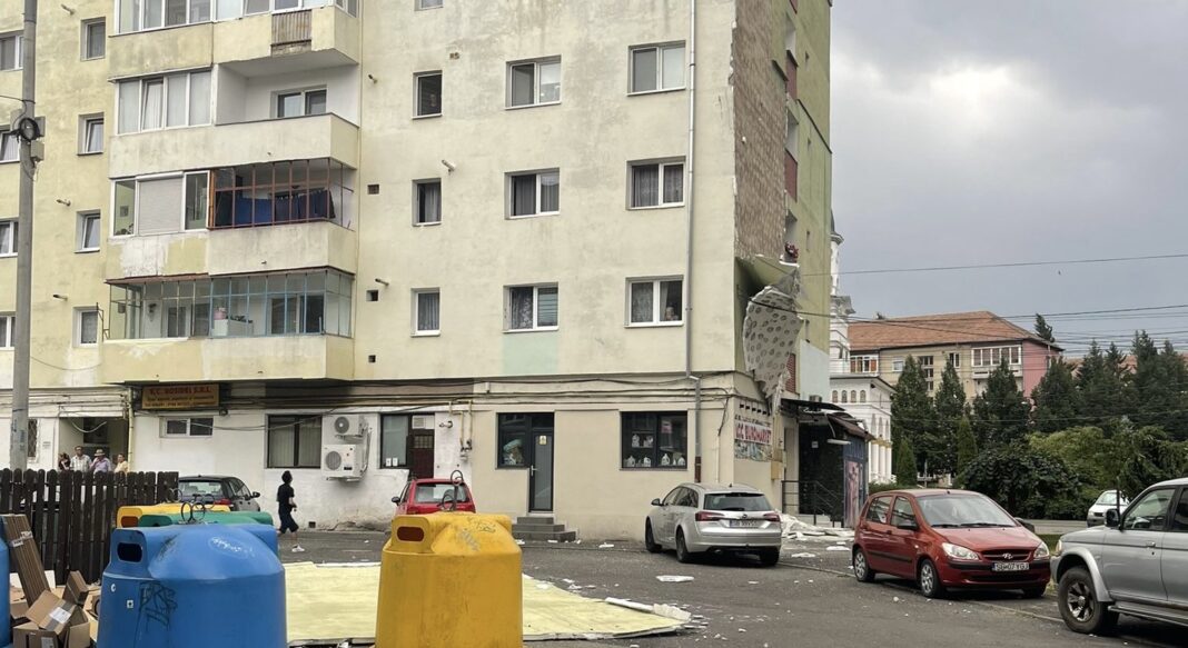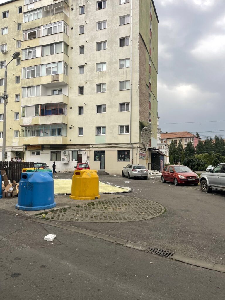 În municipiu, vântul a smuls izolația unui bloc situat pe Bulevardul Mihai Viteazu. Conform primelor informații, fațada blocului a fost afectată pe o suprafață de aproximativ 20 de metri pătrați. Din fericire, nici un pieton nu se afla pe traiectoria bucăți de izolație purtată de vânt metri buni.