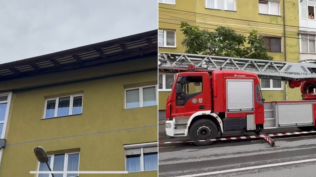 Acoperișul unui bloc situat pe strada Semaforului din municipiul Sibiu a fost mișcat din temelie de vânt. La fața locului se află mai multe echipaje de pompieri ISU.