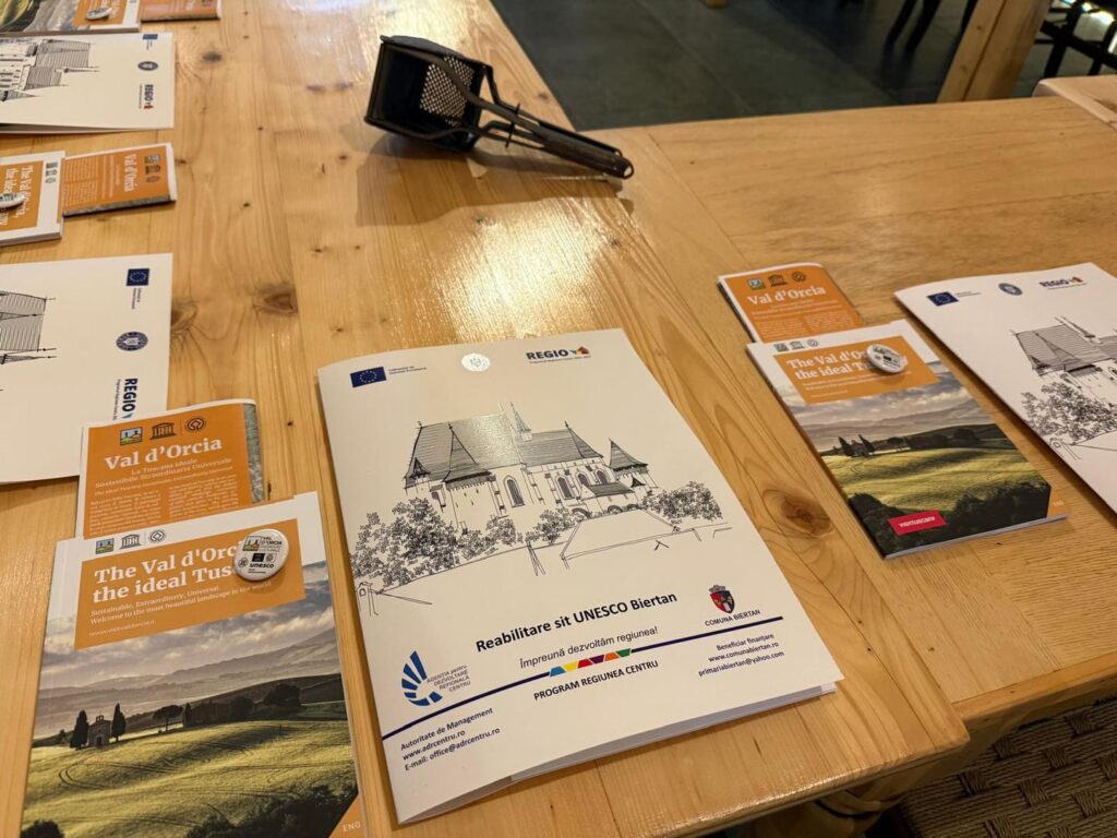 Proiectul de reabilitare a sitului UNESCO din Biertan depășește granițele restaurării arhitecturale și pune accent pe dezvoltarea unor experiențe turistice autentice și sustenabile. În acest sens, Primăria Comunei Biertan a organizat recent un dialog aplicat cu reprezentanți ai comunităților din San Gimignano și Val d’Orcia din Italia, precum și din Pafos din Cipru, pentru a face schimb de bune practici în domeniul turismului cultural și durabil.