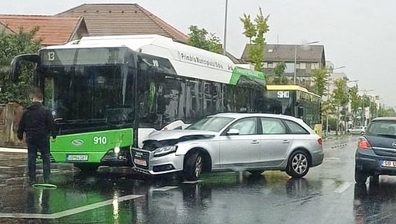 Conform primelor date, o mașină și un autobuz Tursib au intact în coliziune. Din fericire, au rezultat doar pagube materiale. Traficul în zonă este îngreunat.