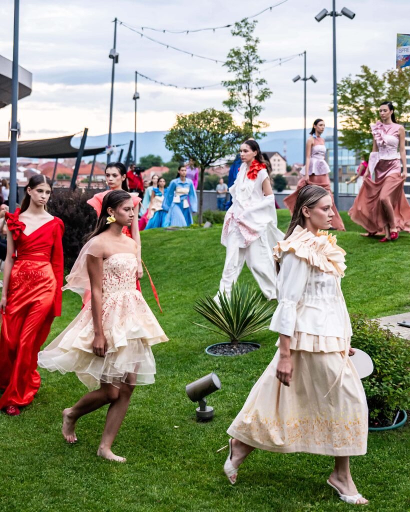 Seara s-a încheiat cu o prezentare panoramică în lumina apusului. Colecția „SYNERGIA 2025” by Promenada Sibiu x Raluca Elena Cînean, intitulată „Summer is Calling”, a adus pe podium țesături vaporoase, tonuri pastel și accente marine, conturând un manifest vizual al eleganței relaxate și al libertății personale.