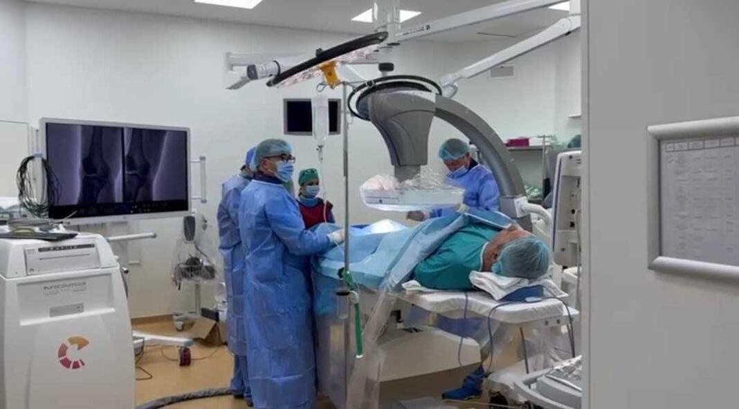 Intervențiile au fost coordonate de dr. Ioan Bitea, medic primar în cardiologie intervențională de la Spitalul Clinic Județean de Urgență Sibiu, și s-au realizat cu ajutorul unui aparat roentgen mobil cu braț C, cu detector digital, proaspăt achiziționat de spital.
