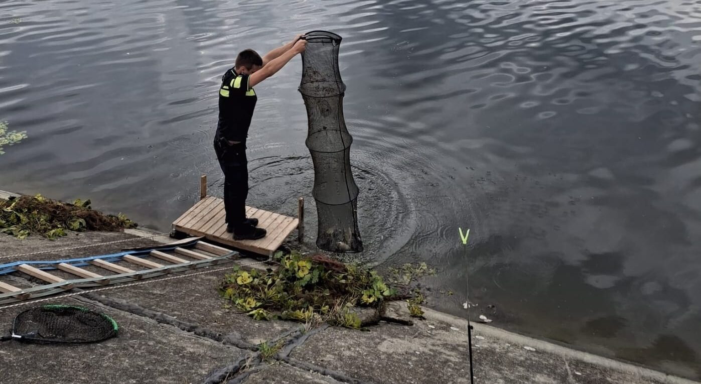 De asemenea, polițiștii au identificat și confiscat o parașută confecționată din plasă monofilament, un dispozitiv interzis, folosit pentru pescuit ilegal.