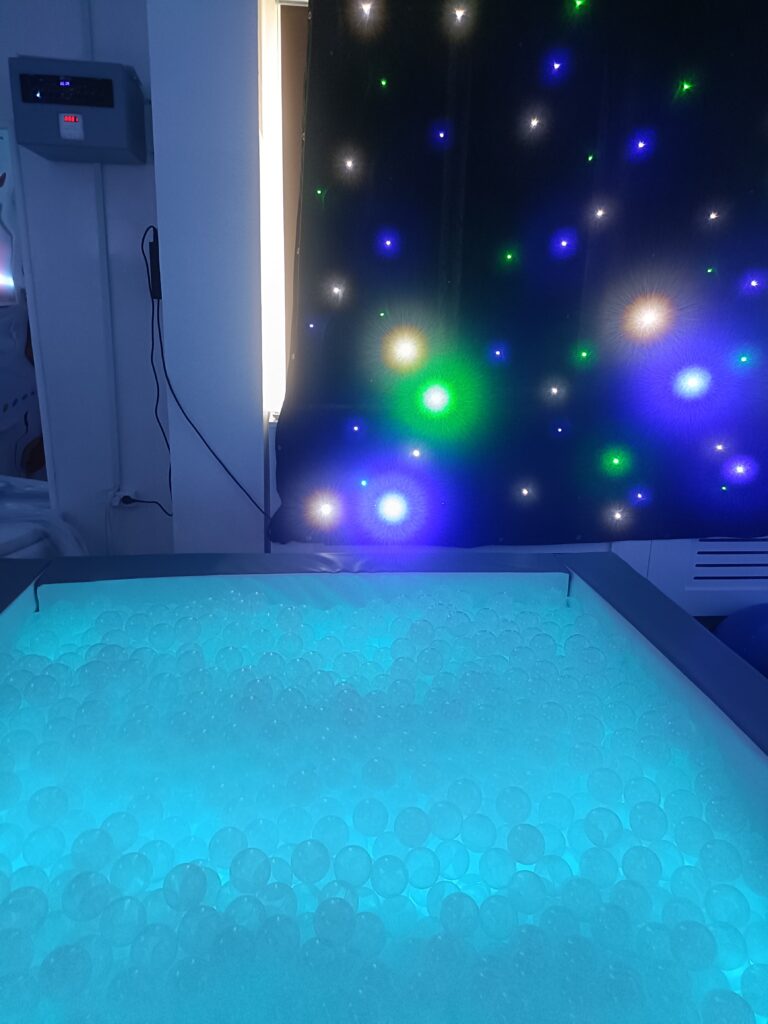 Este un spațiu terapeutic dedicat stimulării controlate a simțurilor – văz, auz, atingere, miros și echilibru – prin joc, lumină, sunet și texturi. Copiii cu tulburări neurologice, precum autismul sau ADHD, beneficiază de astfel de medii pentru a-și regla comportamentele, a-și dezvolta atenția, coordonarea și capacitatea de adaptare la mediul înconjurător.