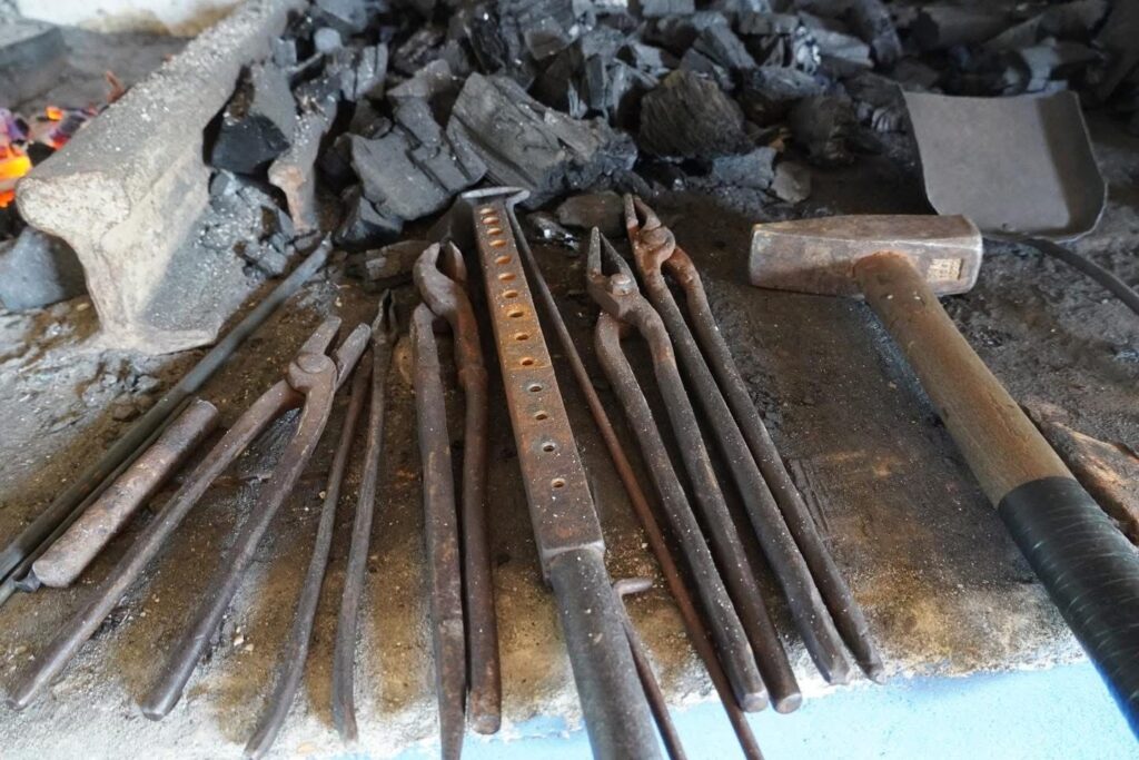 Fierarul nu este omul care să se întindă la taifas. Cărbunele sfârâie sub suflul aerului împins de compresor, iar bucățile de fier sunt trase cu cleștele din jar și puse pe o nicovală zdravănă, cocoțată pe un trunchi de stejar noduros. Fiecare lovitură a ciocanului face ca fierul să scuipe scântei pe podea, iar locul să răsune a toacă metalică.
