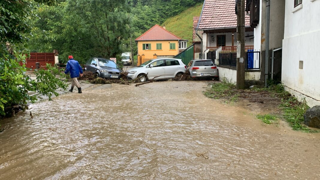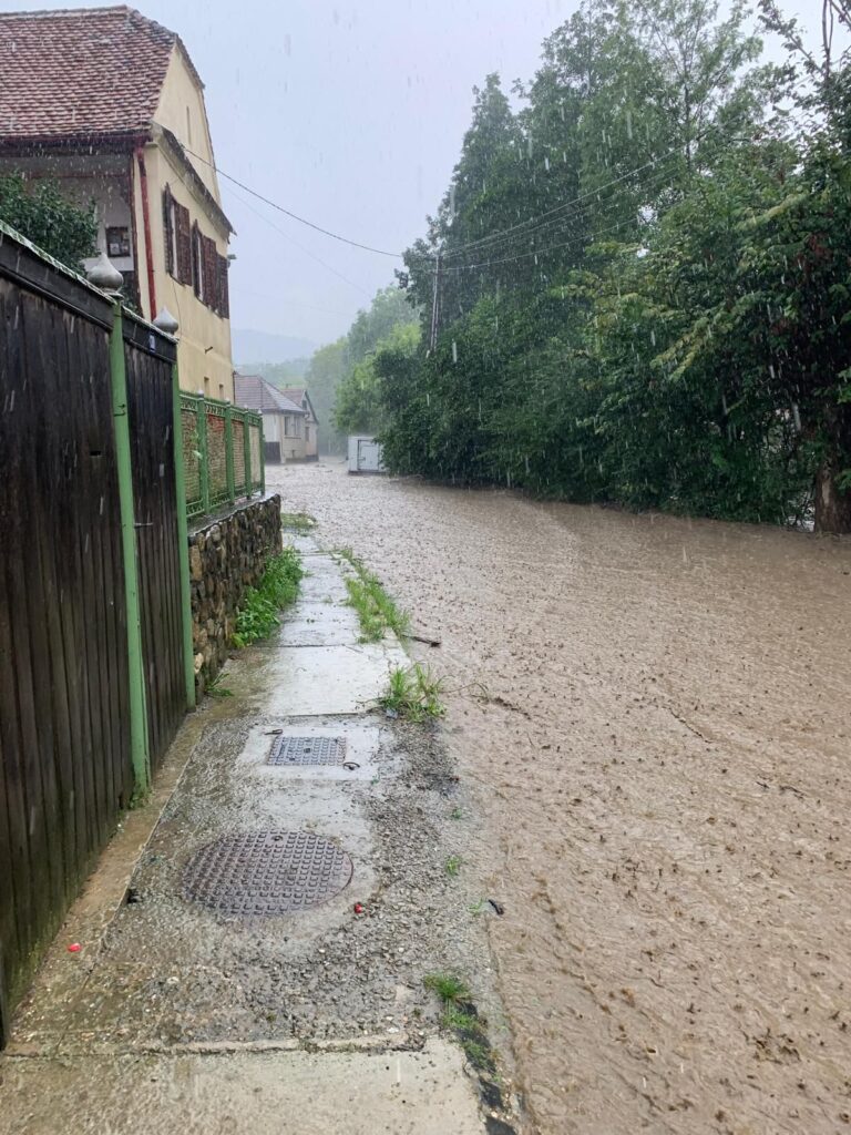 „Apa a venit cu o forță incredibilă. Nici n-am apucat să cobor din casă, că deja strada era acoperită. Am văzut cum o mașină parcată mai jos a fost luată la vale”, a declarat un locuitor din Cisnădioara.