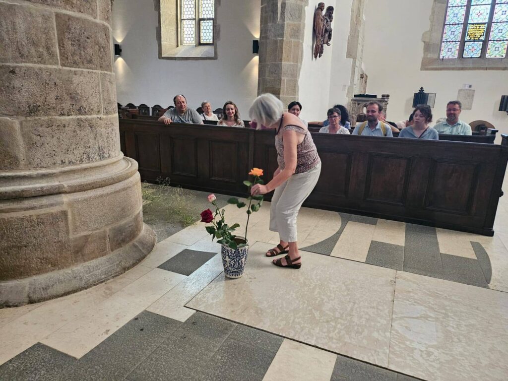 Excursia s-a încheiat cu un moment solemn: depunerea unui aranjament floral, simbol al continuității și al recunoștinței față de contribuția baronului Brukenthal. Acest gest a fost menit să onoreze nu doar figura baronului, ci și pe cei care duc astăzi mai departe moștenirea sa.