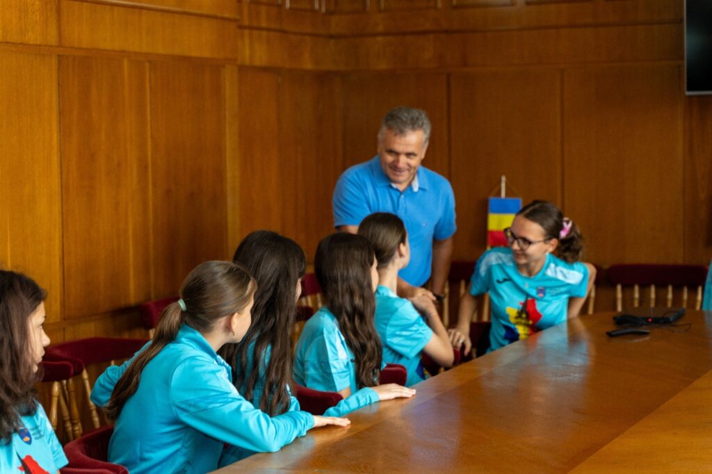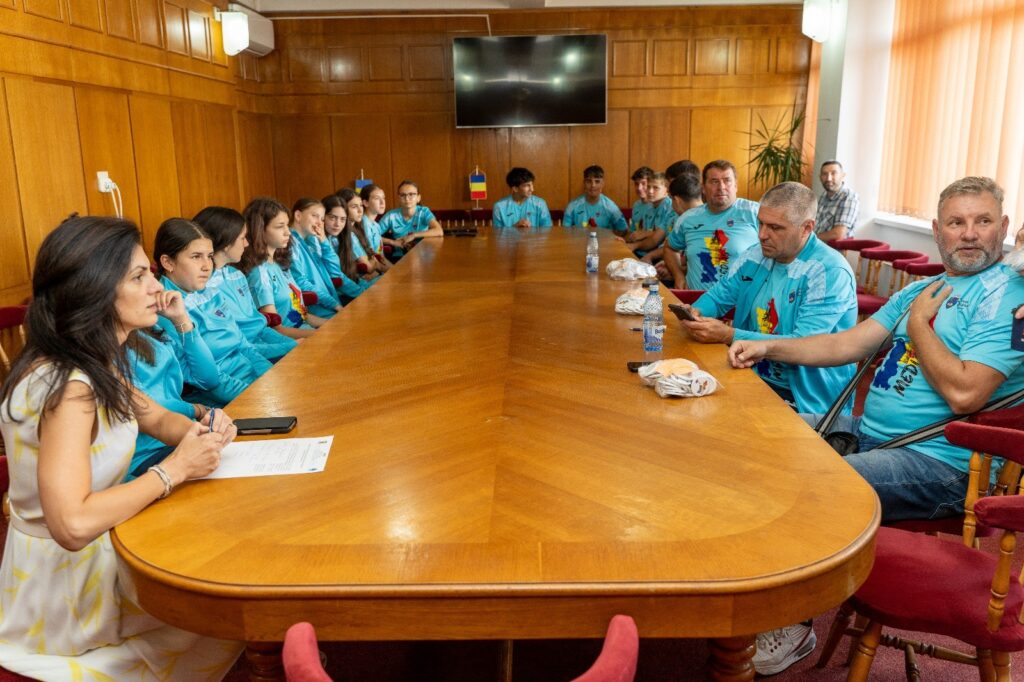 Gheorghe Roman primarul municipiului Mediaș, a primit astăzi la sediul municipalității delegația care va reprezenta orașul la cea de-a 57-a ediție a Jocurilor Internaționale ale Copiilor. Evenimentul va avea loc între 3 și 8 august în orașul Tallinn din Estonia și va reuni aproximativ 900 de tineri din orașe din întreaga lume, care vor concura la șapte discipline sportive.
