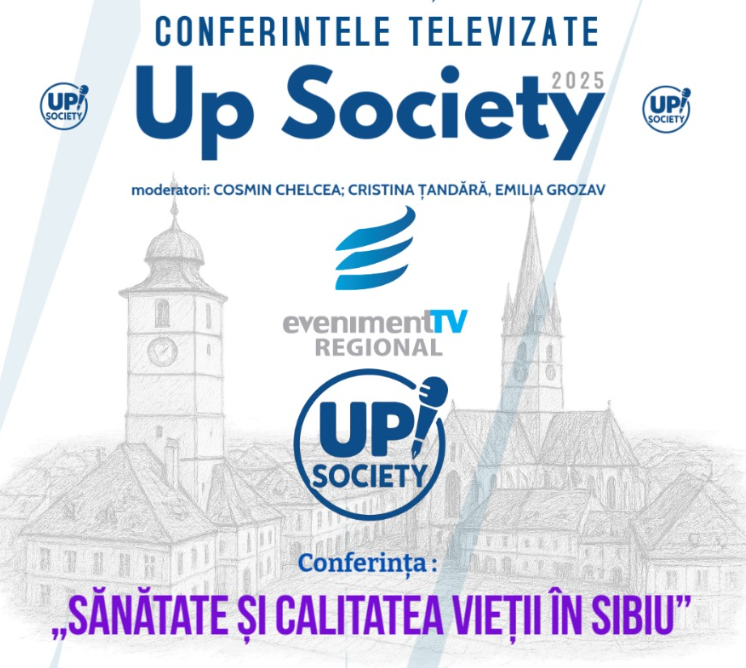 Asociația Evenimentul Sibian și Eveniment TV Regional invită publicul la o nouă conferință din cadrul Conferințelor Televizate Up Society 2025. Evenimentul va avea loc joi, 31 iulie începând cu ora 17:30, la CineGOLD din Promenada Mall. Tema conferinței este „Sănătate și calitatea vieții în Sibiu” care va aduce în prim-plan subiecte actuale despre starea sistemului medical, prevenție și soluții pentru îmbunătățirea nivelului de trai în oraș.