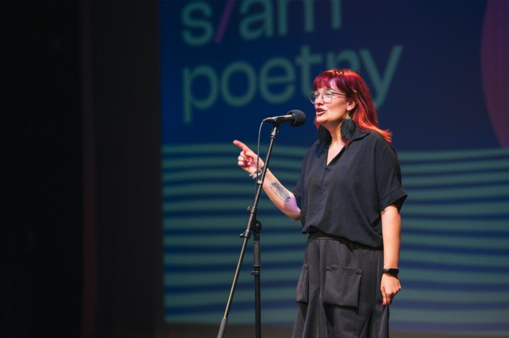 Slam poetry este o formă de poezie performativă care pune accent pe sinceritate și experiență trăită, nu pe recuzită sau acompaniament. Fiecare participant are maximum 5 minute să livreze un text propriu, recitat pe de rost, în fața publicului.