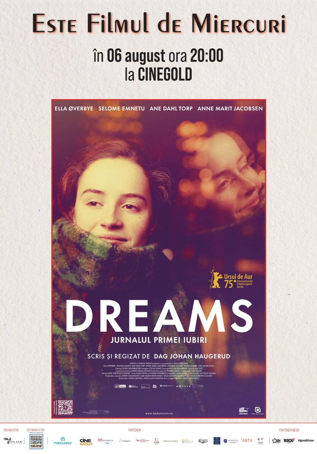 Proiecțiile din cadrul programului „ESTE Filmul de Miercuri” revin la CineGold Sibiu. Prima întâlnire cu publicul cinefil va avea loc miercuri, 6 august, la ora 20:00, când va fi proiectat filmul norvegian „Dreams – Jurnalul primei iubiri”, câștigător al Premiului Ursul de Aur la Festivalul Internațional de Film de la Berlin din 2025.