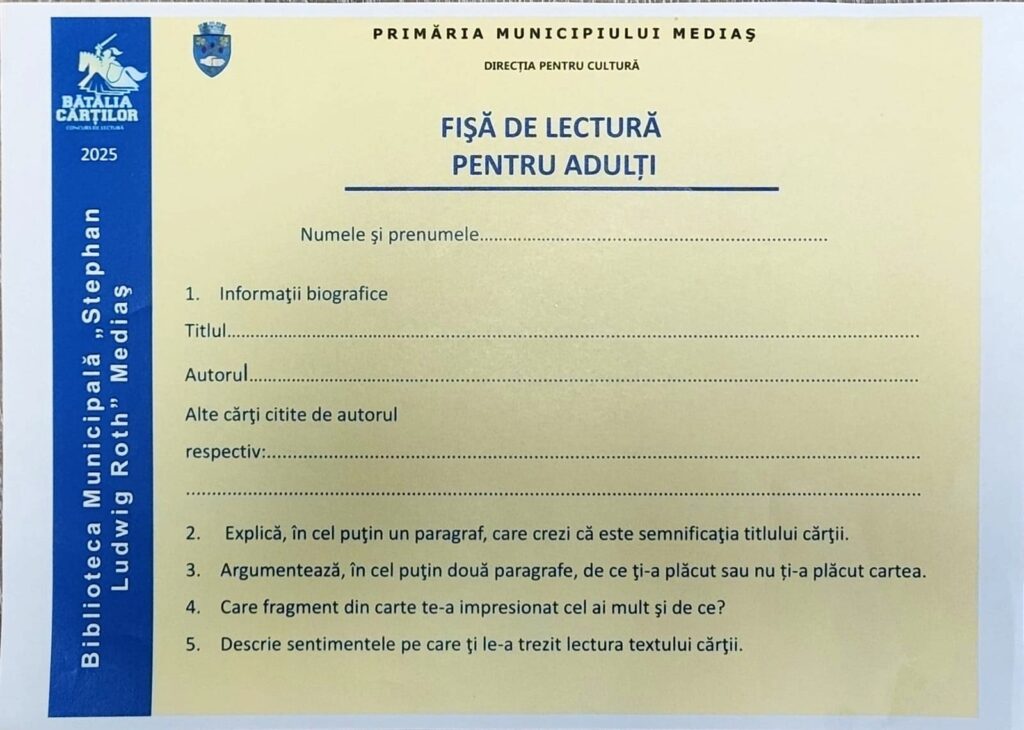 Biblioteca Municipală Mediaș își reafirmă astfel rolul de centru cultural activ al comunității, unde lectura nu doar informează, ci și unește generații. Accesul este deschis tuturor, iar poveștile îi așteaptă pe rafturi, pregătite să prindă viață.