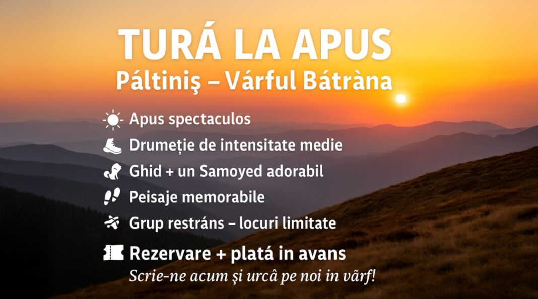 Pentru doritori, detaliile despre traseu și înscrieri sunt disponibile aici pe site-ul Sunset & Stargazing pe Vârfulf Bătrâna | BookTes.