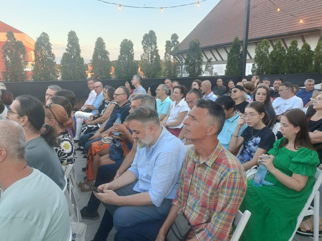 Seara de vineri a adus din nou multă lume la ultimul eveniment din seria Concerte pe Acoperiș organizat de Filarmonica de Stat Sibiu. Printre cei prezenți a fost și viceprimarul Mihai Onițiu, care a stat alături și de directorul Bibliotecii ASTRA, Răzvan Pop. Evenimentul a fost SOLD -OUT, ceea ce a marcat un succes al întregii stagiuni Concerte pe Acoperiș care a vândut toate biletele la toate concertele din ultimele două săptămâni.