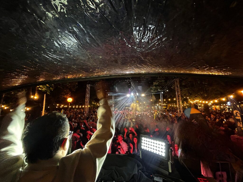 Geo Da Silva, DJ-ul în vârstă de 49 de ani originar din Timișoara, a transformat seara într-o adevărată petrecere. Oamenii au sărit, au dansat, s-au urcat unii pe umerii celorlalți și s-au bucurat fără inhibiții la fiecare mix. Artistul și-a condimentat setul cu intervenții savuroase, dar și momente interactive în care i-a pus pe spectatori să sară în același ritm.