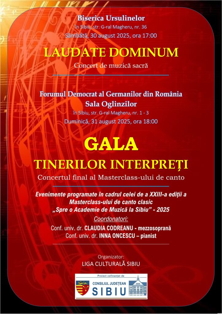 La finalul lunii august, cea de-a 23-a ediție a Masterclass-ului de canto clasic „Spre o Academie de Muzică la Sibiu”, aduce în oraș două evenimente muzicale importante organizate de Liga Culturală Sibiu.