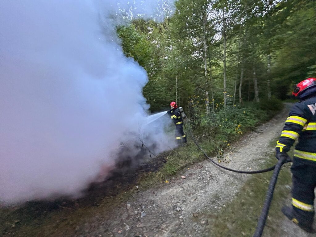 Pompierii sibieni au intervenit miercuri seara pe un drum forestier din localitatea Arpașu de Sus pentru lichidarea unui incendiu de autoturism.