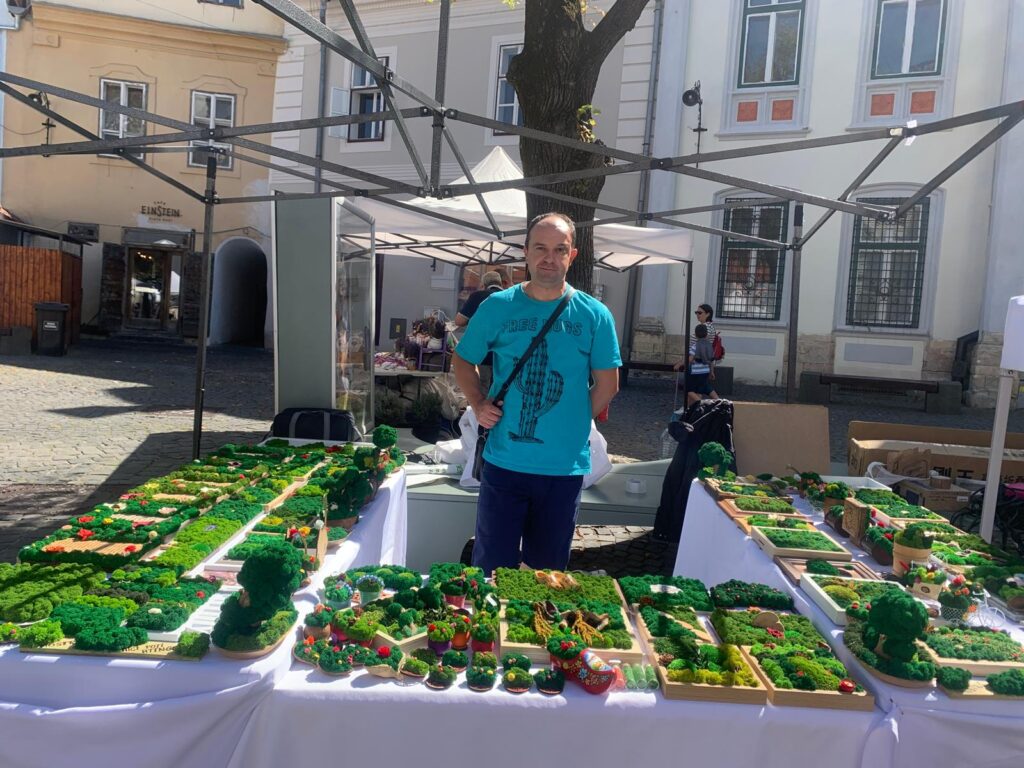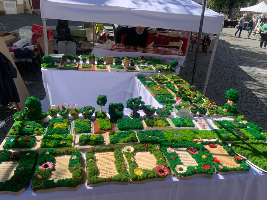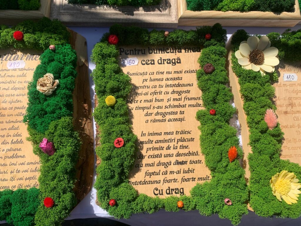 Un alt stand interesenat a fost a lui Cosmin Ciocoi din Cluj. Acesta lucrează de patru ani cu licheni decorativi, aduși din Norvegia și Finlanda. El ne-a explicat că respectivii licheni trec printr-un proces de colorare și stabilizare, având în mod natural o nuanță albă, asemănătoare untului. Lichenii absorb umiditatea din aer, îl purifică, nu atrag insecte, nu au nevoie de lumină sau intreținere și resping praful. Cosmin realizează lucrări de diferite dimensiuni, de la compoziții mici care necesită doar jumătate de oră, până la piese complexe ce pot dura mai multe ore. Acesta ne-a împărtășit că acest proiect cu lichenii a început când a oferit un cadou personalizat de el unui apropiat și de atunci a realizat acest business, numit „Licheni decorativi by Cosmin”.