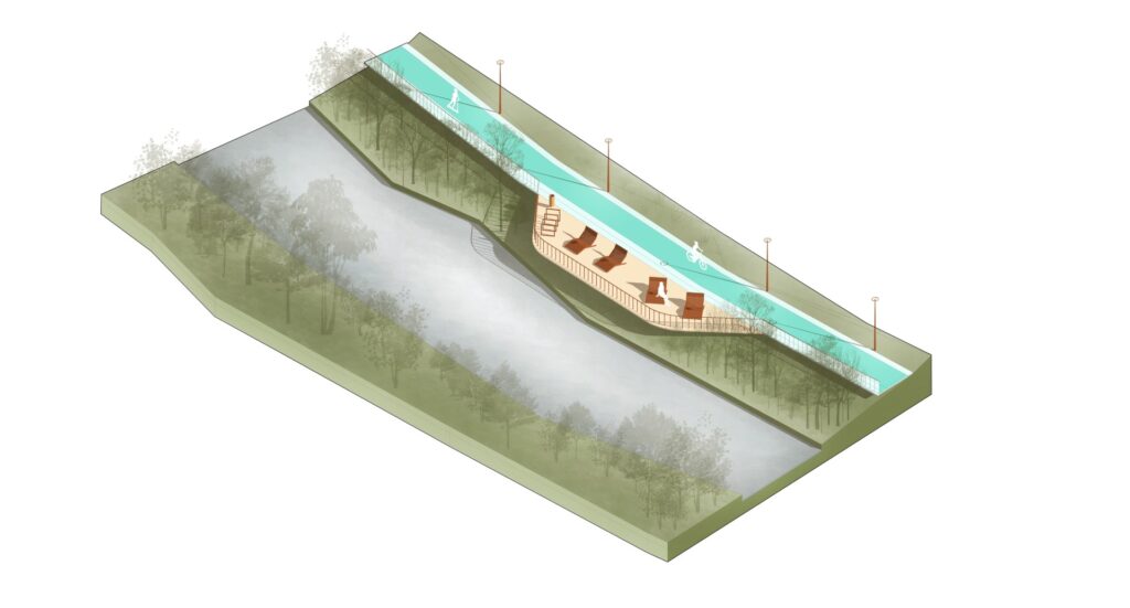 Pe lângă pistele pentru biciclete, proiectul prevede amenajări peisagistice, plantarea de arbori și arbuști, precum și dotarea cu mobilier urban.