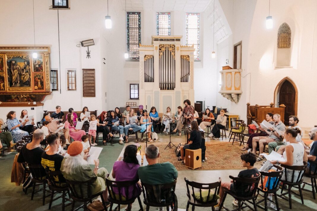 Înainte ca participanții să înceapă să cânte împreună, Laura și Charlie au explicat fiecare piesă: tempo-ul, ritmul și felul în care melodia putea fi simțită pentru a fi interpretată mai ușor. „Ne-a venit ideea încă din pandemie, când urmăream Gaia Music Collective și ne-a plăcut această formă de a aduce oamenii împreună pentru ceva simplu și relaxant”, explică Laura. Charlie recunoaște că pentru el a fost o experiență nouă: „Eu predau muzică, compun, am trupă și lucrez cu actori, dar nu am mai făcut niciodată un cerc de cântat cu oameni din afara sferei mele profesionale. A fost o provocare plăcută și o bucurie să văd cum oamenii se deschid pas cu pas.”