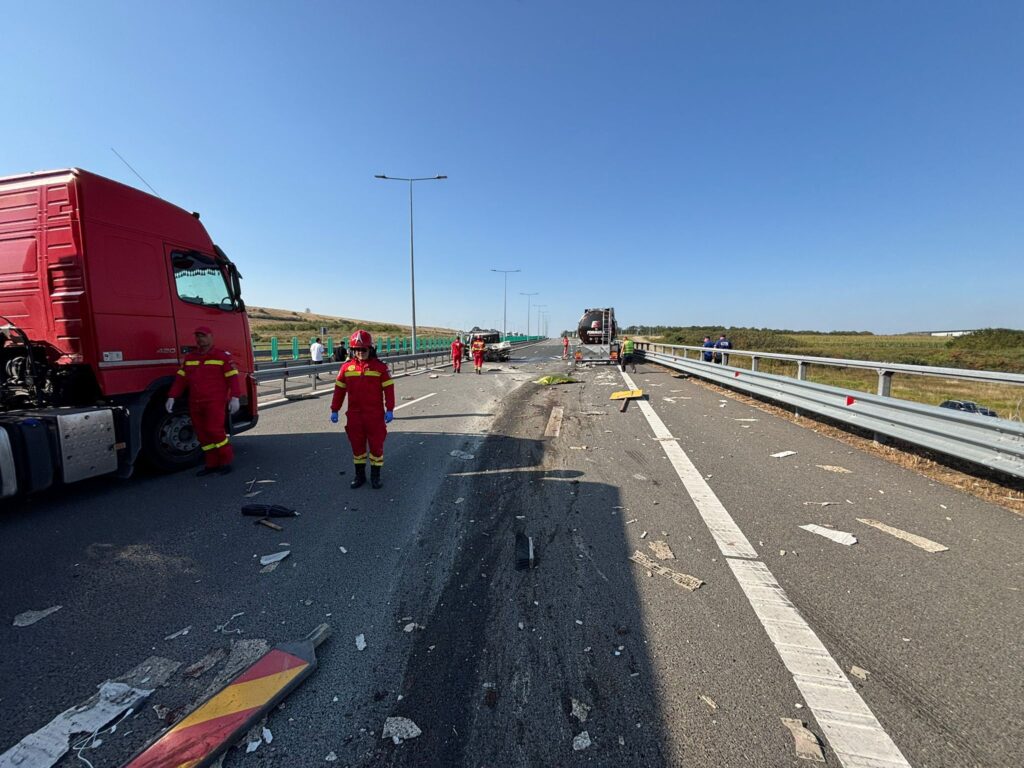 Un accident rutier s-a produs marți după-amiază pe Autostrada A1. Un autocisternă și o autoutilitară s-au lovit, iar trei persoane au fost declarate decedate. Victimele sunt muncitori cu vârste între 20 si 30 de ani, angajați la PORR și efectuau lucrări de mentenanță pe A1.