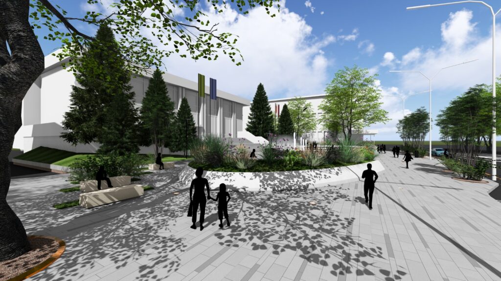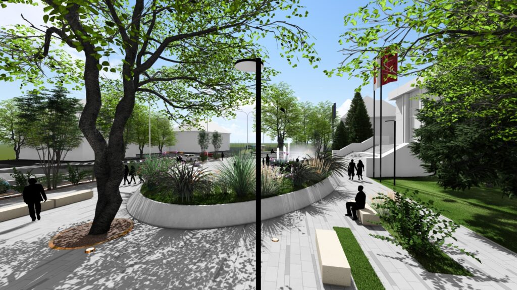 Crearea a două gradene elipsoidale cu rol atât pentru vizibilitate la evenimente, cât și pentru relaxare, acestea urmând să includă jardiniere cu plante decorative și iluminat nocturn.