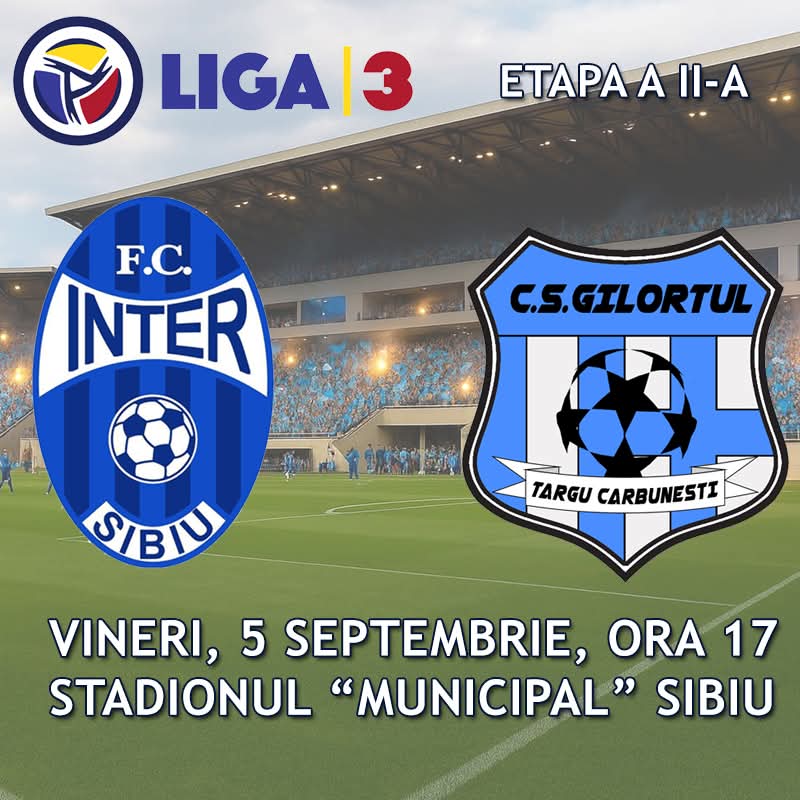 Primul meci acasă al echipei Inter Sibiu în Liga 3 are loc vineri, 5 septembrie, de la ora 17. Locul de desfășurare este stadionul ”Municipal” din Sibiu.